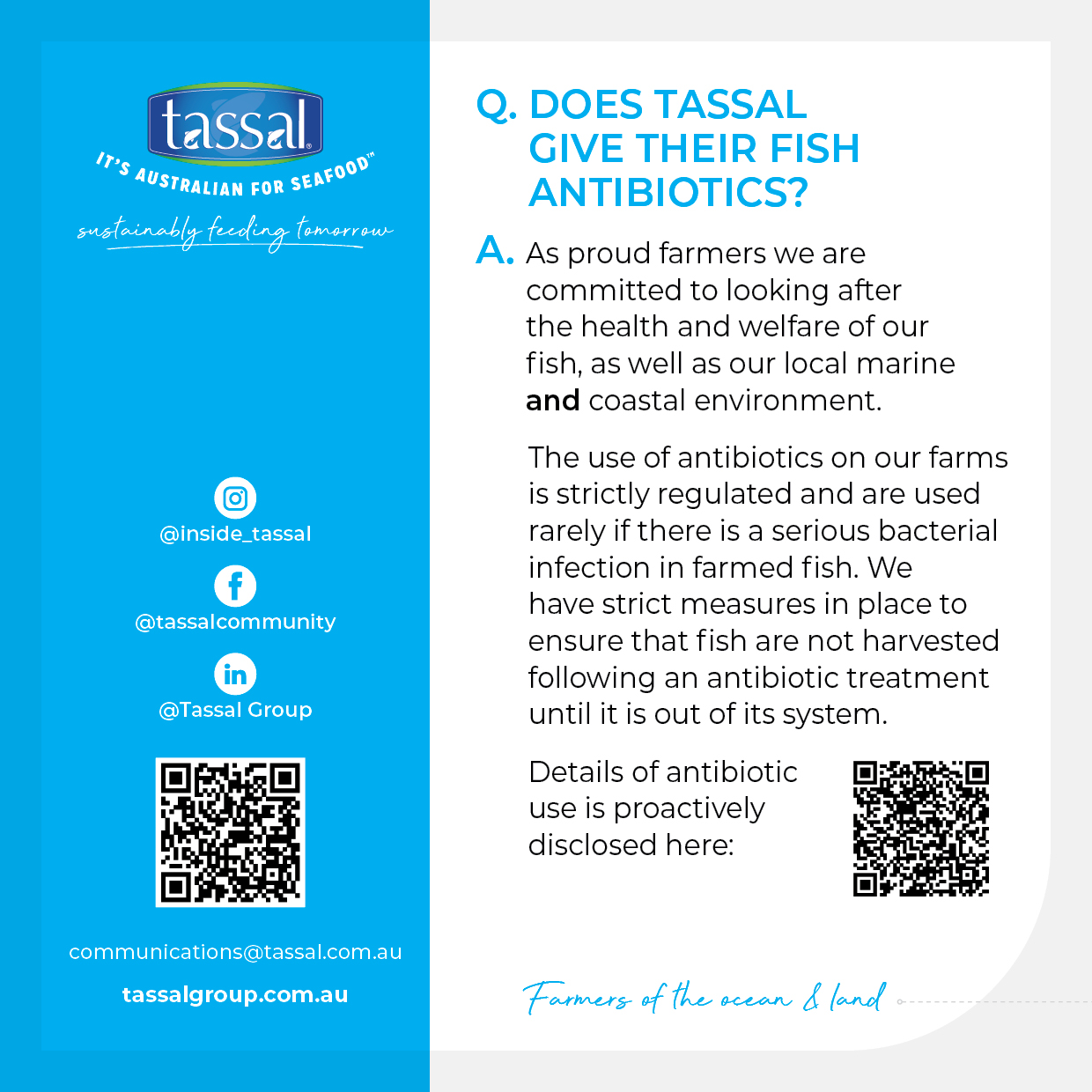 DOES TASSAL GIVE THEIR FISH ANTIBIOTICS?