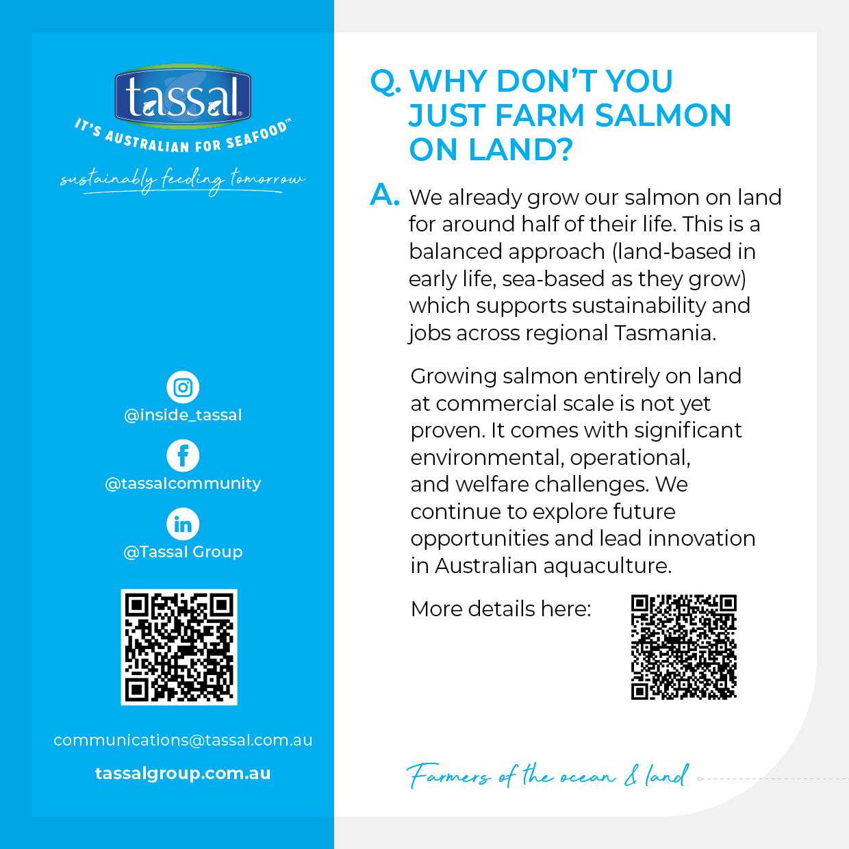 Find out more here: https://salmontasmania.au/wp-content/uploads/2025/03/FACTS-Land-based-farming.pdf