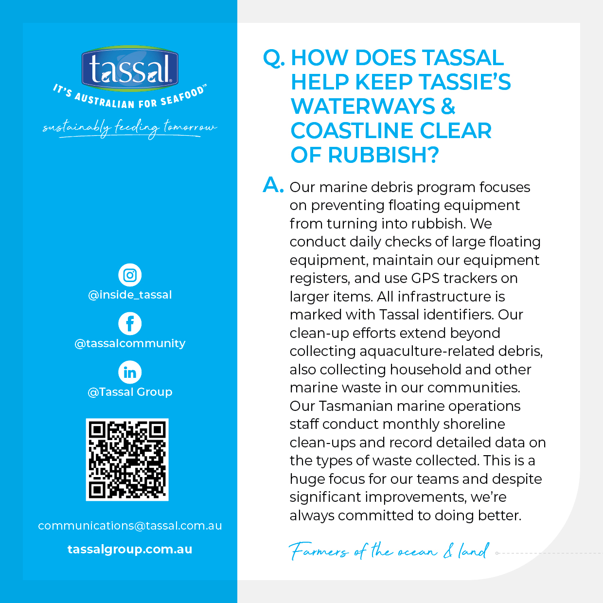HOW DOES TASSAL HELP KEEP TASSIE’S WATERWAYS & COASTLINE CLEAR OF RUBBISH?